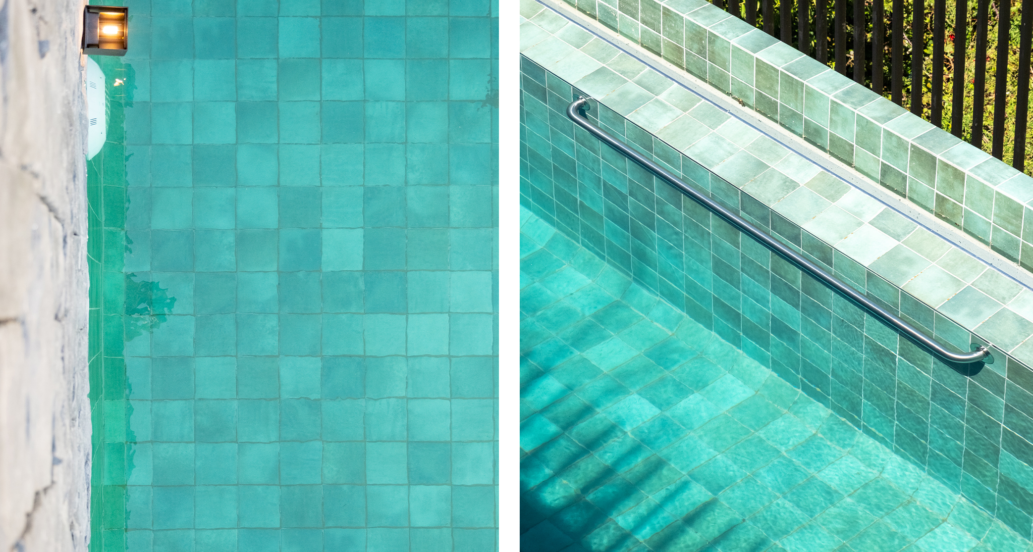 Esta decisión no solo transformó la forma, sino también los requerimientos técnicos del proyecto. Las piscinas de este tipo implican mayores desafíos en términos de mantención, lo que llevó al equipo a explorar distintas alternativas de revestimiento que respondieran de mejor manera a estas condiciones.